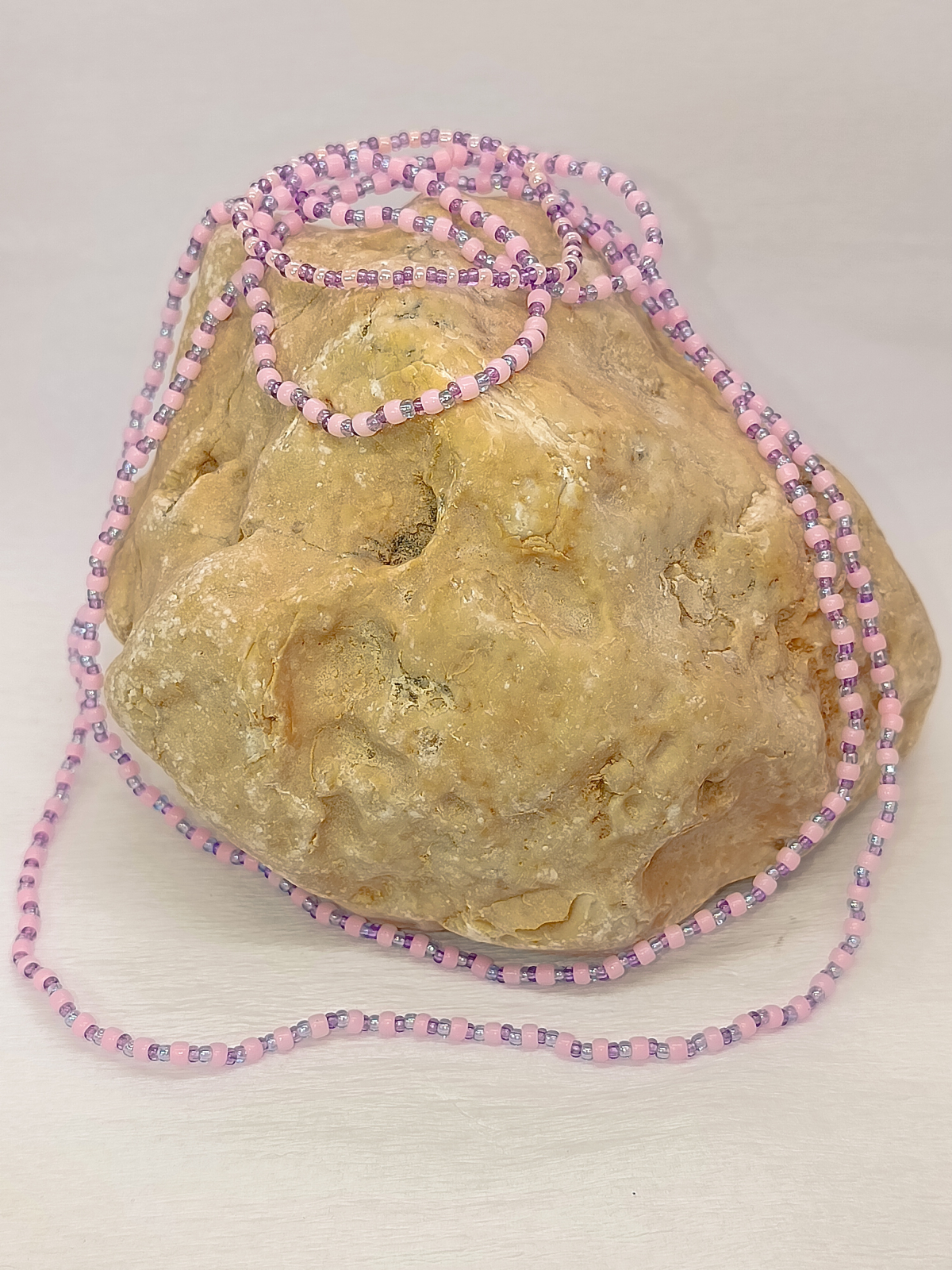 Bijuteriile din mărgele înșirate pe elastic sunt delicate și necesită o îngrijire atentă. Evită contactul cu apa(sarata,cu clor), parfumurile, cremele sau detergenții, care pot slăbi elasticul și deteriora luciul mărgelelor. Nu le purta în timpul somnului, la duș sau în activități intense. Păstrează-le într-o cutie uscată, departe de lumină directă și umiditate, pentru a le prelungi frumusețea și durabilitatea.