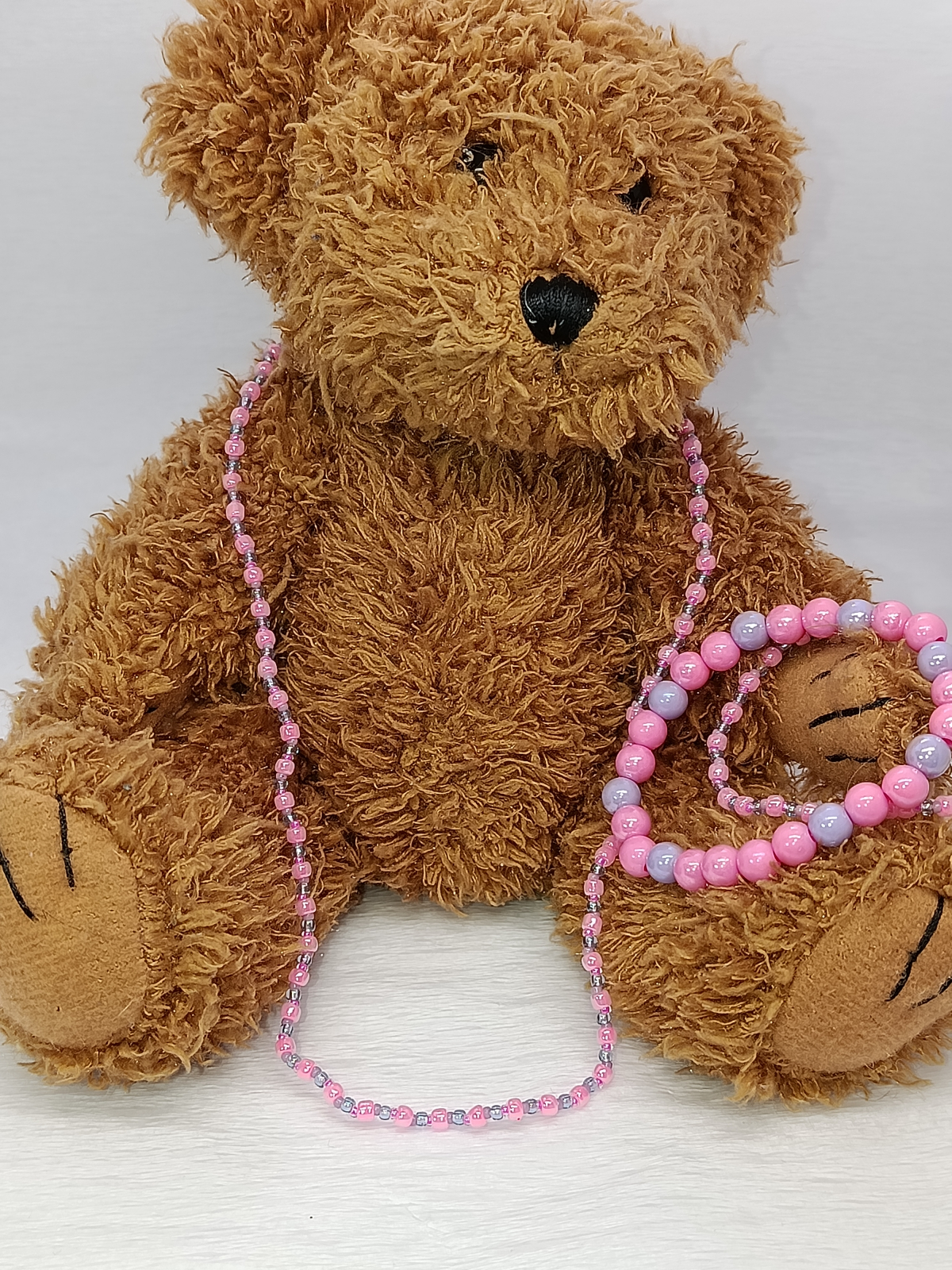 Bijuteriile din mărgele înșirate pe elastic sunt delicate și necesită o îngrijire atentă. Evită contactul cu apa(sarata,cu clor), parfumurile, cremele sau detergenții, care pot slăbi elasticul și deteriora luciul mărgelelor. Nu le purta în timpul somnului, la duș sau în activități intense. Păstrează-le într-o cutie uscată, departe de lumină directă și umiditate, pentru a le prelungi frumusețea și durabilitatea.