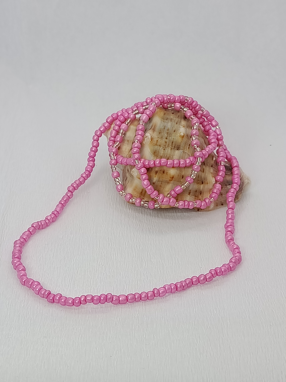 Fiecare piesă este realizată din mărgele de nisip de o nuanță sublimă de roz sidefat, completate armonios de mici accente de roz deschis.